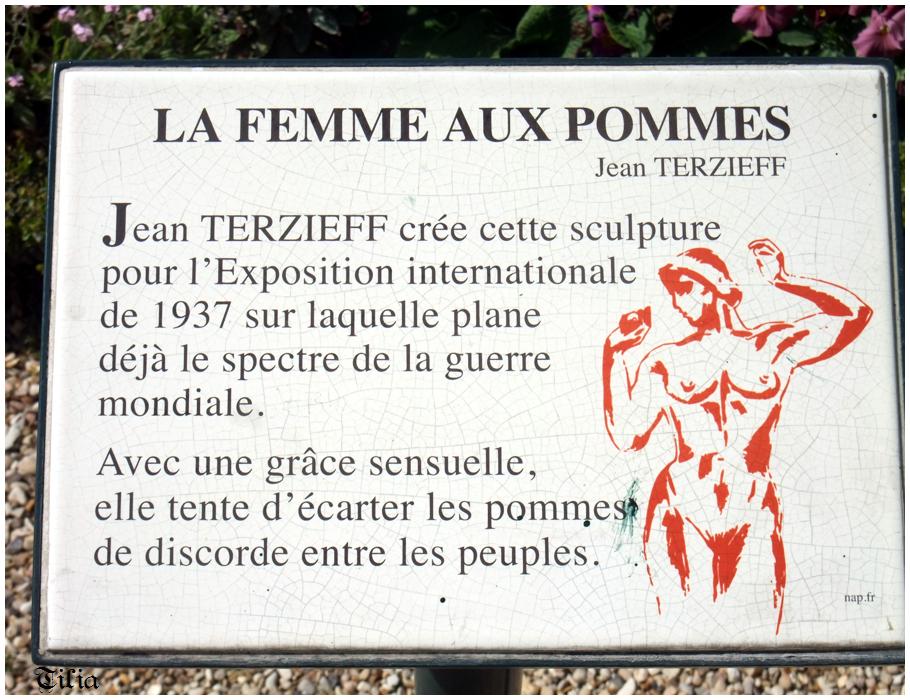 Grand merci pour tes liens, Cergie. Effectivement la "Rivière" sur le flanc à l'air bien mal en point. Quant à Jean Terzieff, le sculpteur de "La Femme aux Pommes", il a été l'élève de Bourdelle, voir sa biographie et ses photos au début de ce document sur les sculptures du Luxembourg. À noter au passage, le point commun entre Jean-Paul Belmondo et Laurent Terzieff, deux acteurs de la même génération, tout deux fils de sculpteurs. Et leurs pères respectifs ont vécu tous les deux jusque 83 ans !