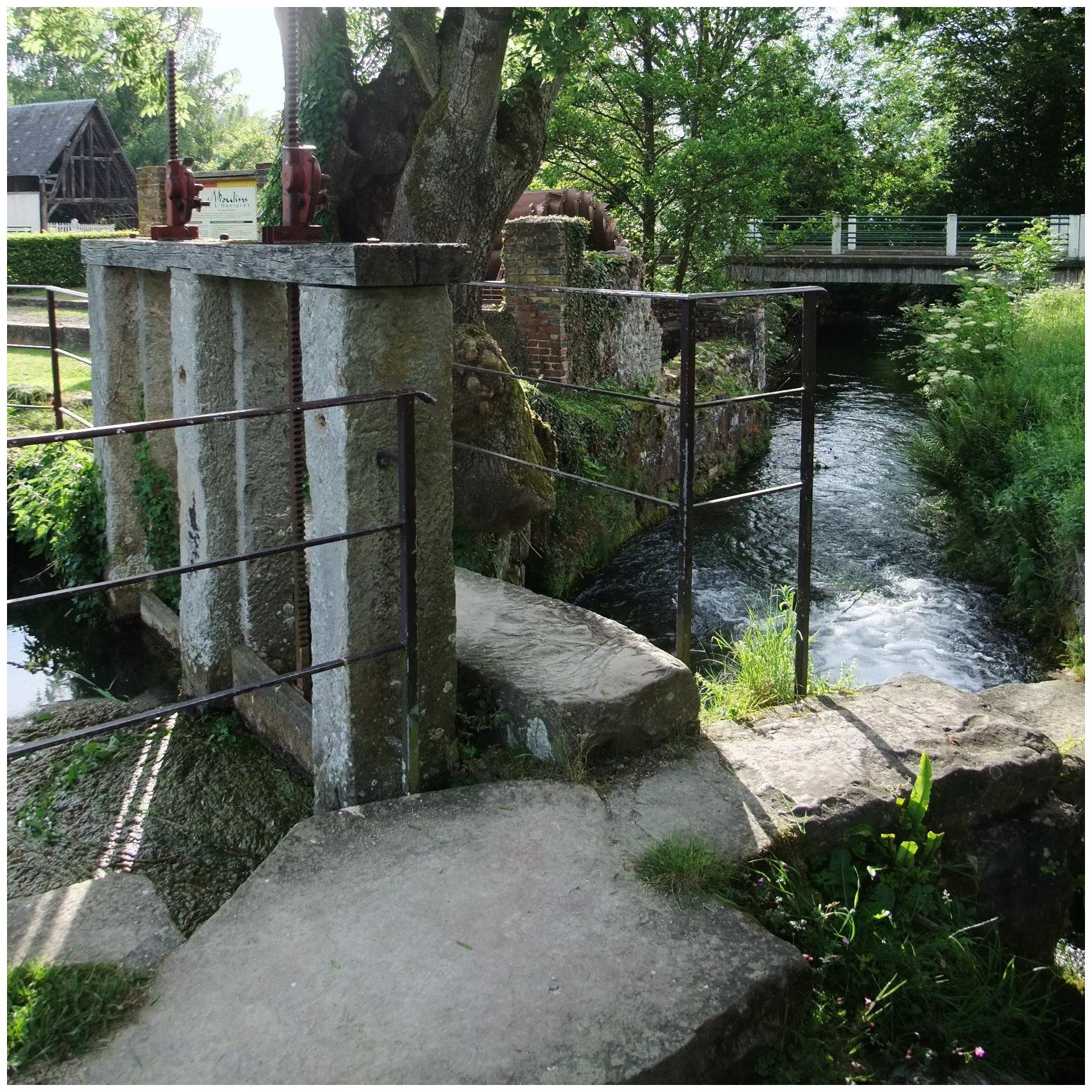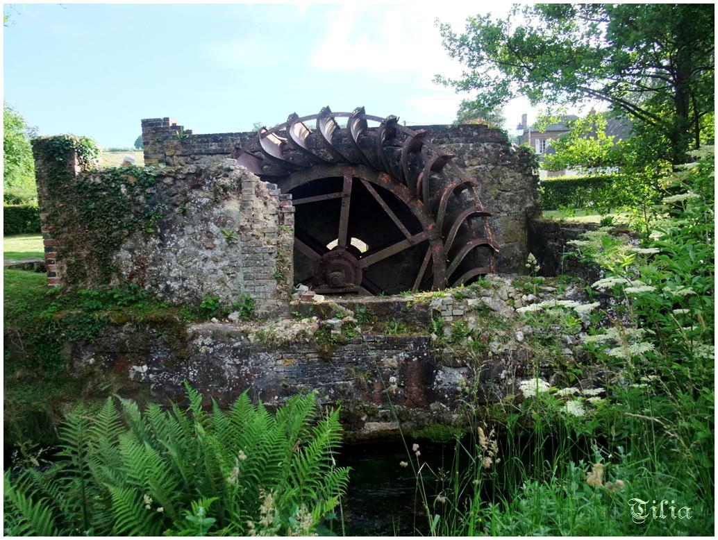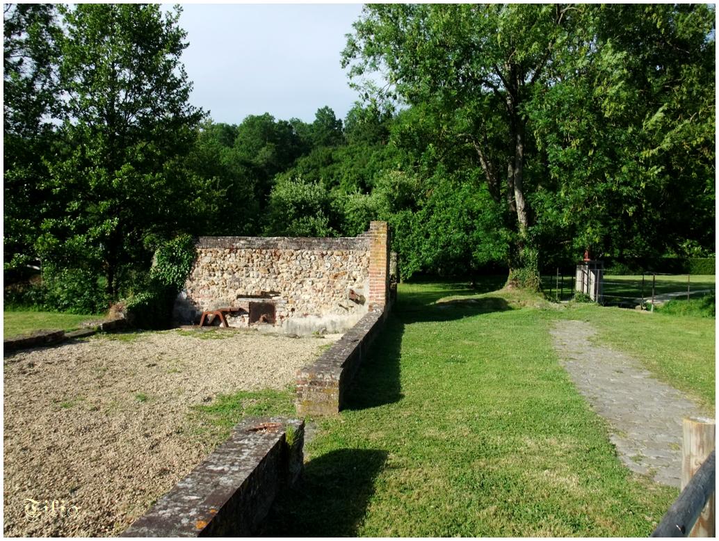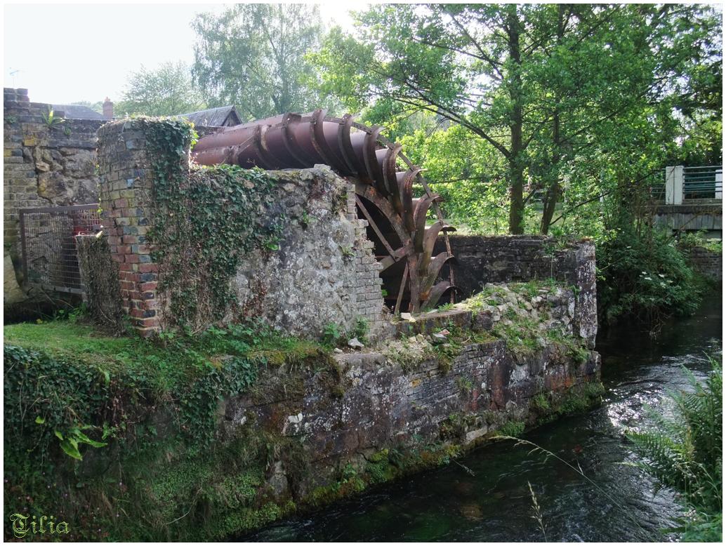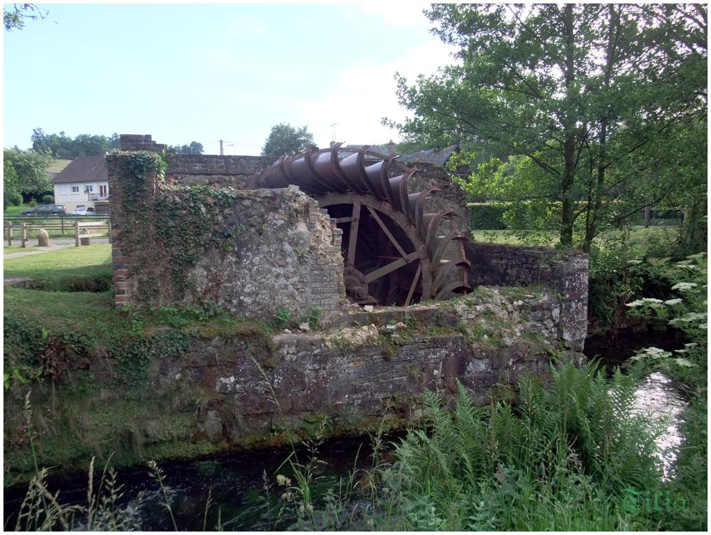 Avec la roue, ces murs sont tout ce qu'il reste d'un ancien moulin à blé. Premier d'une cinquantaine de moulins qui tournaient tout au long du cours de la rivière durant le XIXe siècle, celui-ci témoigne du fort débit et du flux constant de l'Orbiquet, capable de faire tourner un moulin à seulement quelques dizaines de mètres de sa source.