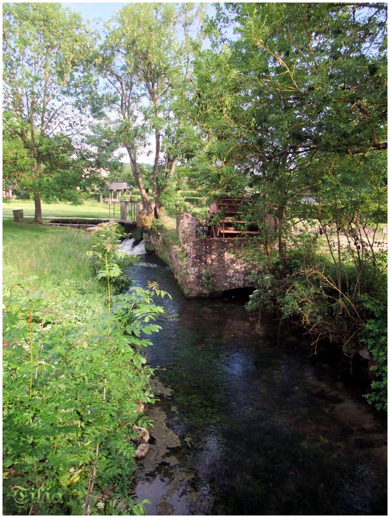 Le bief (dont on voit le départ à droite de la photo ci-dessus) est une dérivation d'une partie de la rivière, sans doute destinée à irriguer le site de la source à l'époque où il était public et habité. Voir le plan du site.