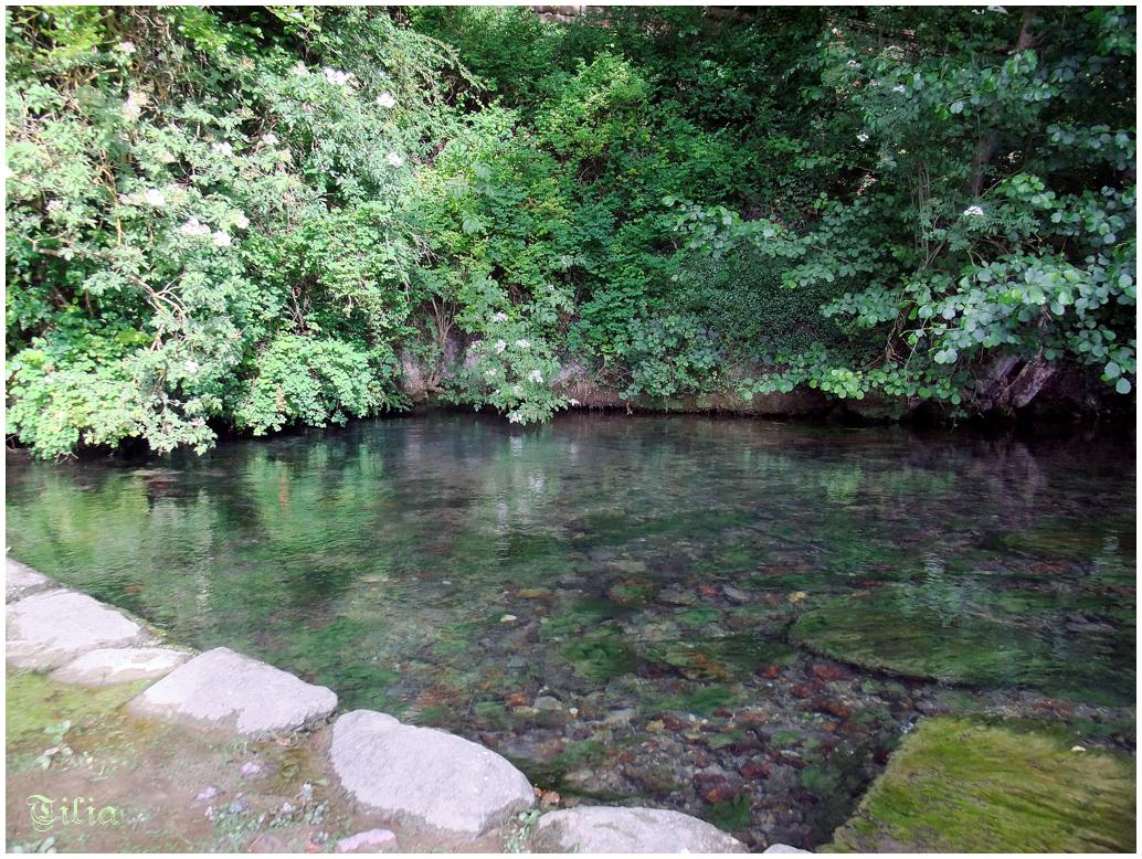 Passons maintenant au bassin de la source. Je vous présente mes photos dans l'ordre de mon circuit sur le site. La source est évidemment le lieu qui m'attire le plus, en raison de l'aura mystérieuse qu'engendre le long parcours souterrain de ses eaux.