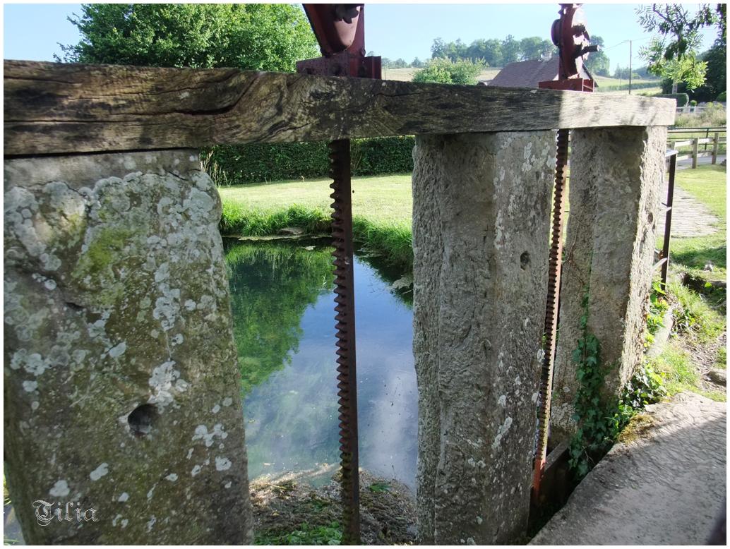 La roue de l'ancien moulin et les vannes sur l'Orbiquet